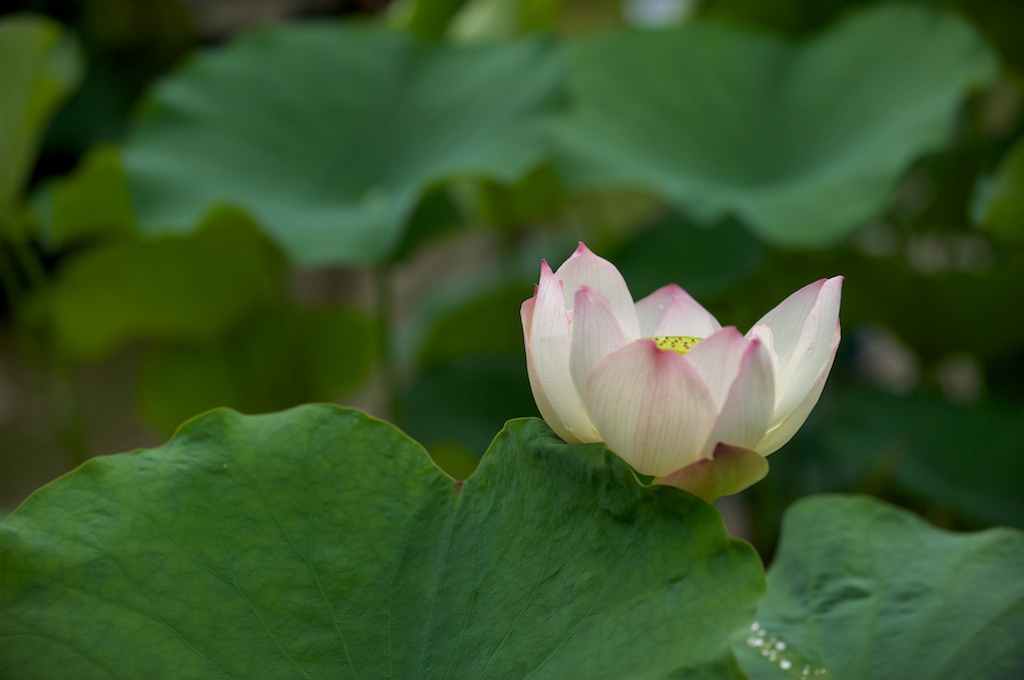 葉に水玉転がして白花笑う