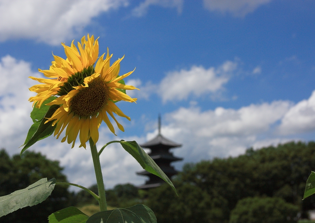 ヒマワリと五重塔