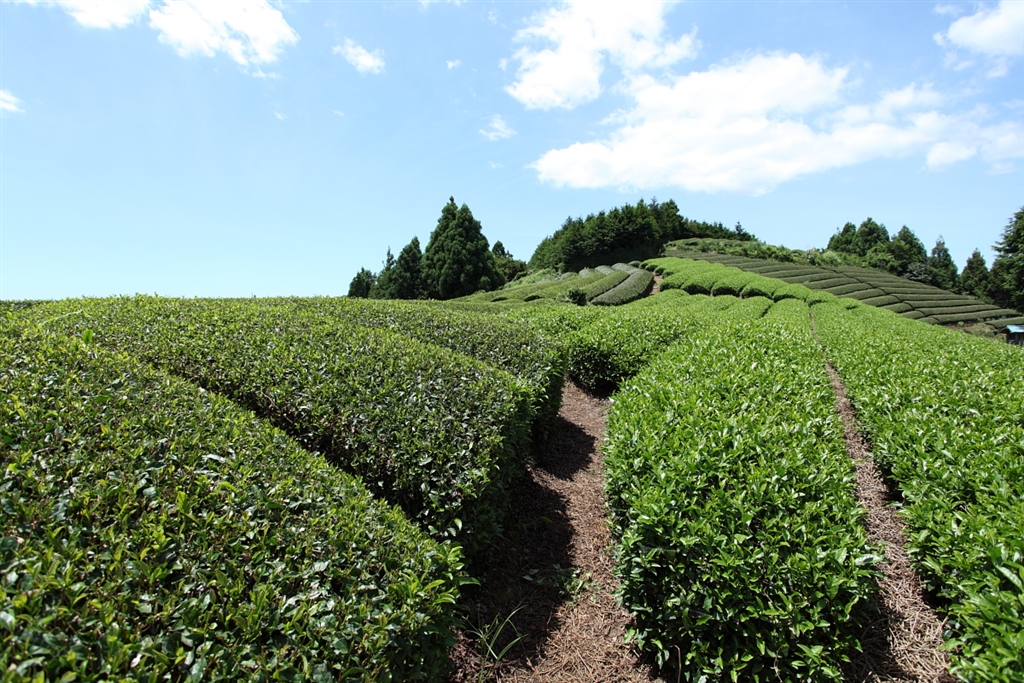 逆光気味にお茶畑