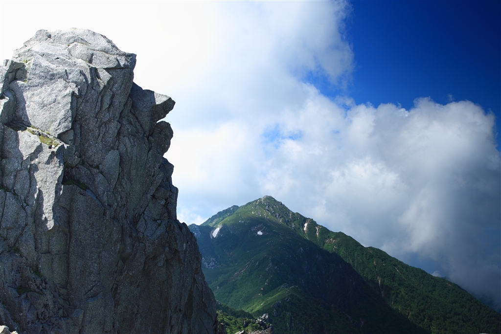 天狗岩と三の沢岳。