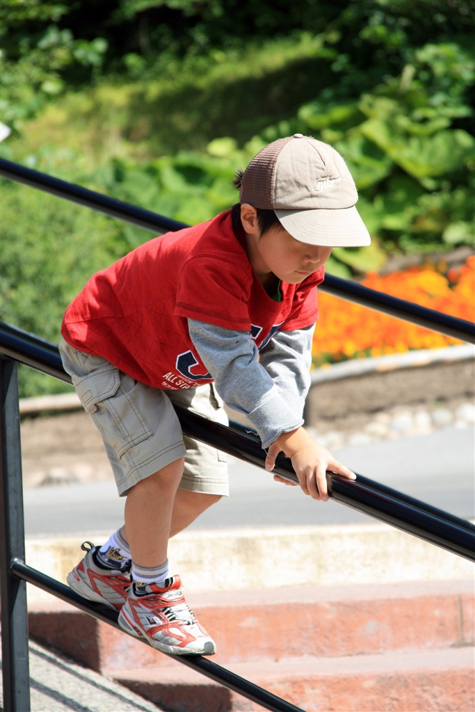 正しい子供の階段の降り方。