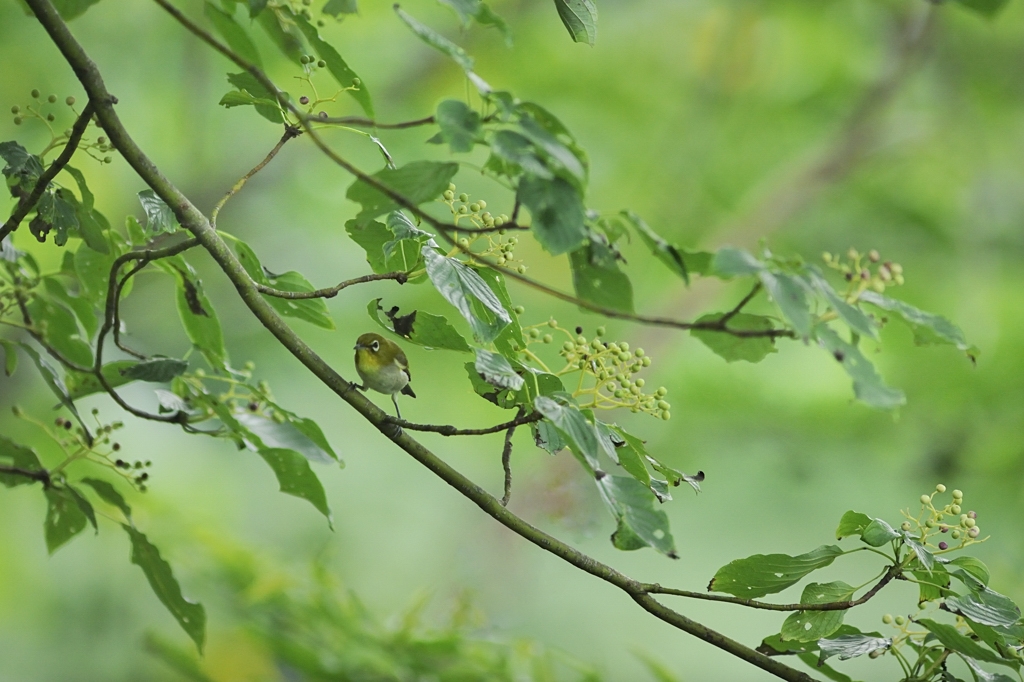 ミズキの実を食べるにきたメジロ