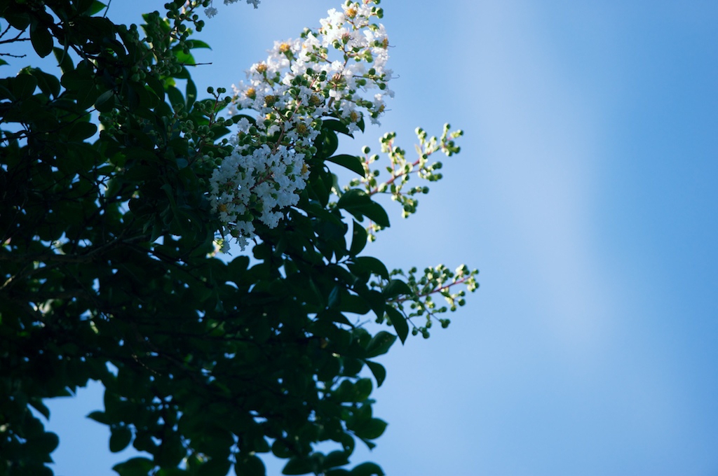 朝日に光る梢の花(これ何の木?)