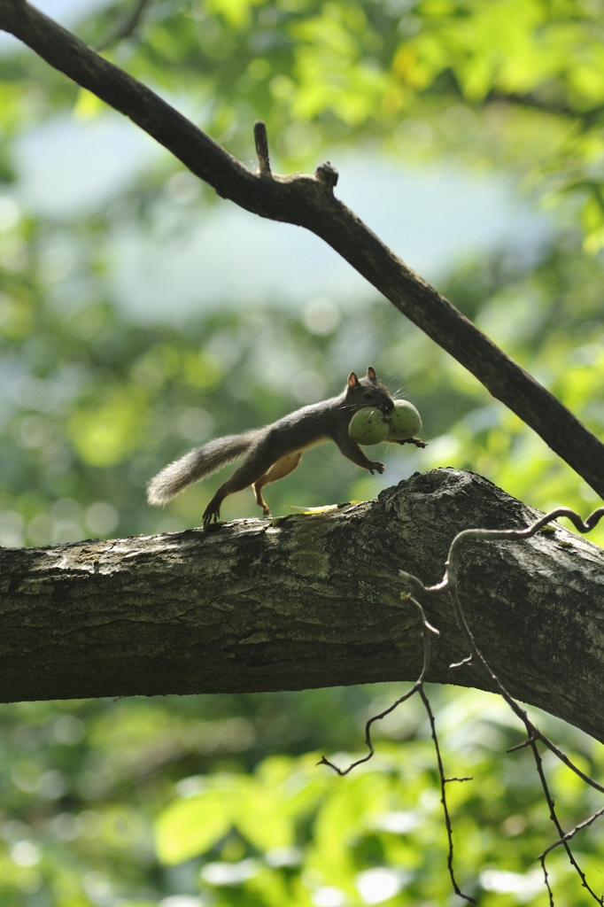 クルミを運ぶニホンリス