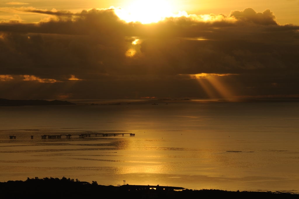 日の出だけど、輝く海の模様が好き