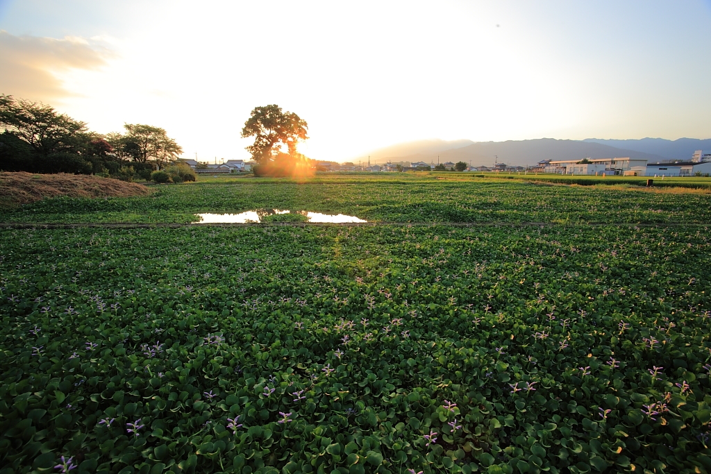 ホテイアオイに朝日差す タム17-35