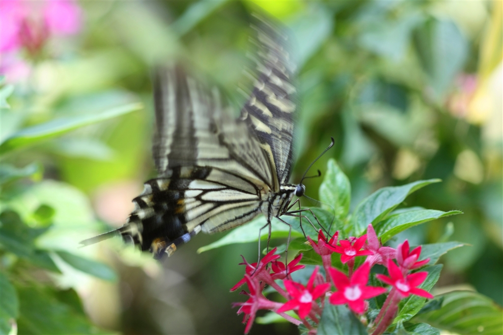 吸蜜しながらせわしげに翅を動かすナミアゲハ(メス??)