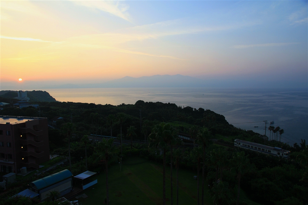 早朝のJR指宿枕崎線(ホテルの窓から撮影)