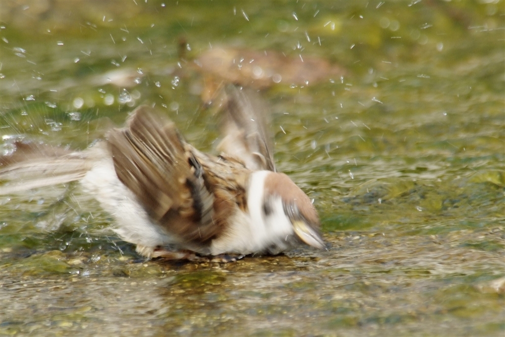 水浴びするスズメちゃん