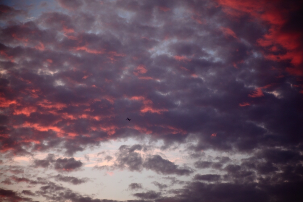 夕焼け雲と旅客機