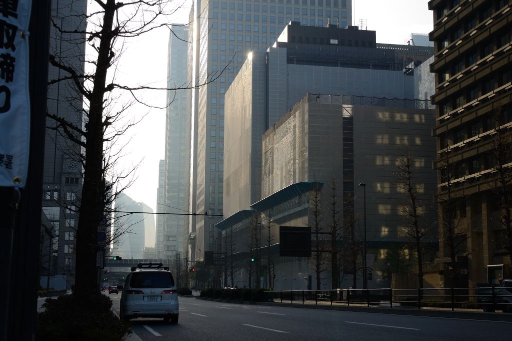 朝靄も(同じく東京駅近辺)