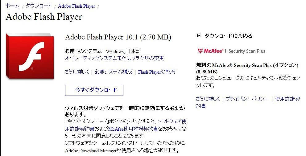 CAdobe Flash Playerの確認ページ