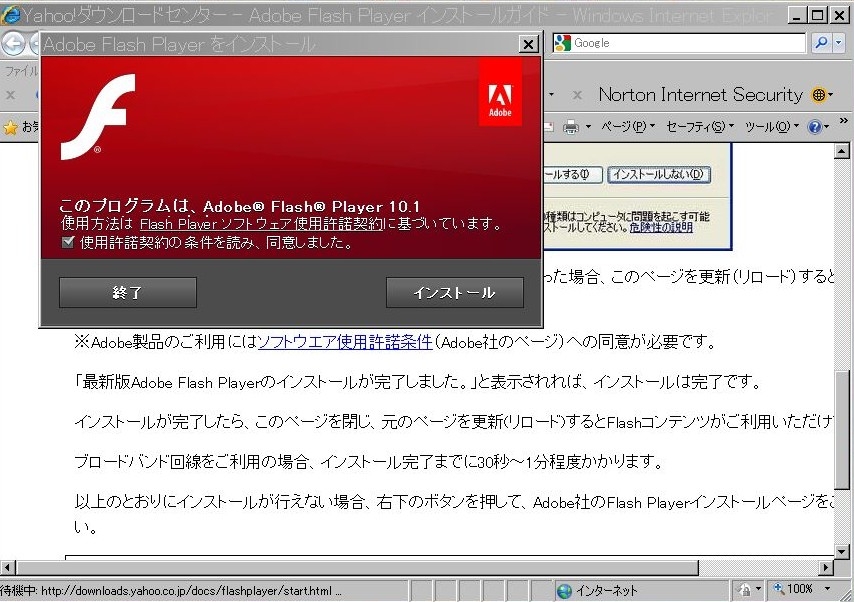 Adobe Flash Player 10.1 既に終了の表示が!!