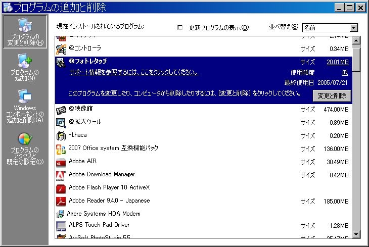 Adobe Flash Player 10 ActiveX プログラム追加と削除