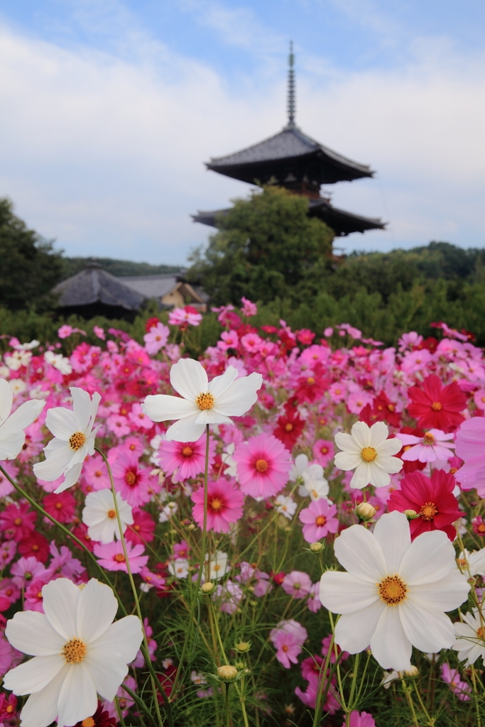 法起寺と白いコスモス TAM28-75