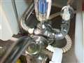 手前の銀色の蛇口の元のボルトを外して