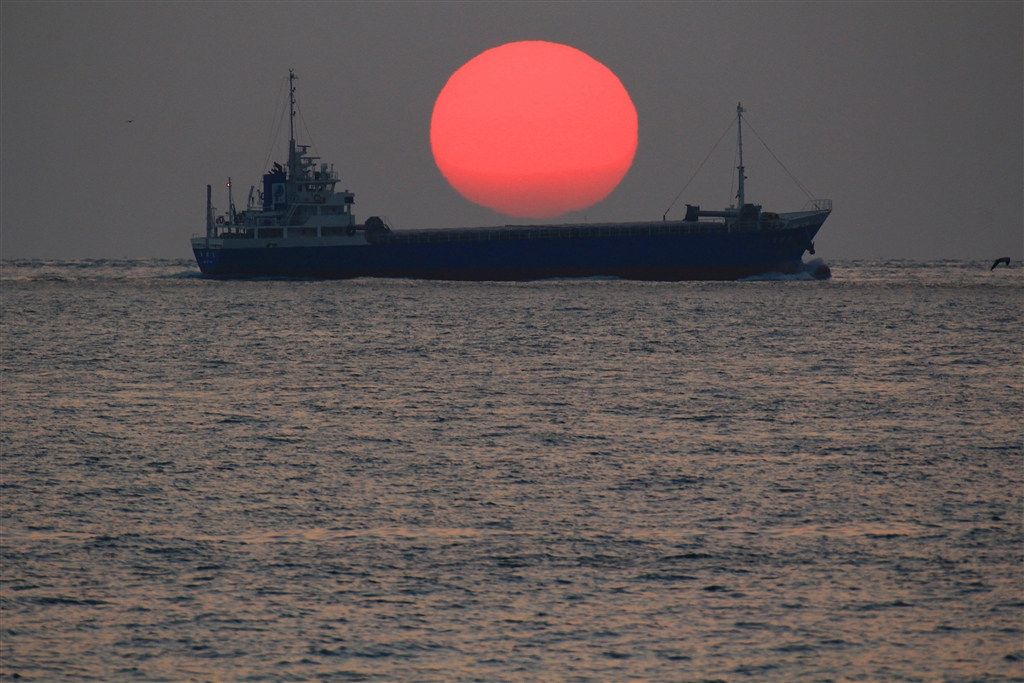 太陽光がガスっぽい空気層を通ってくると青色ほど散乱・吸収されて真っ赤に染まる