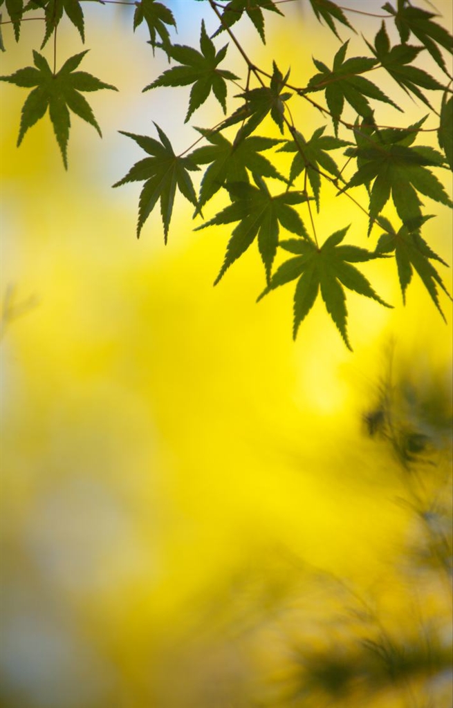 イチョウの葉っぱの黄色とモミジ