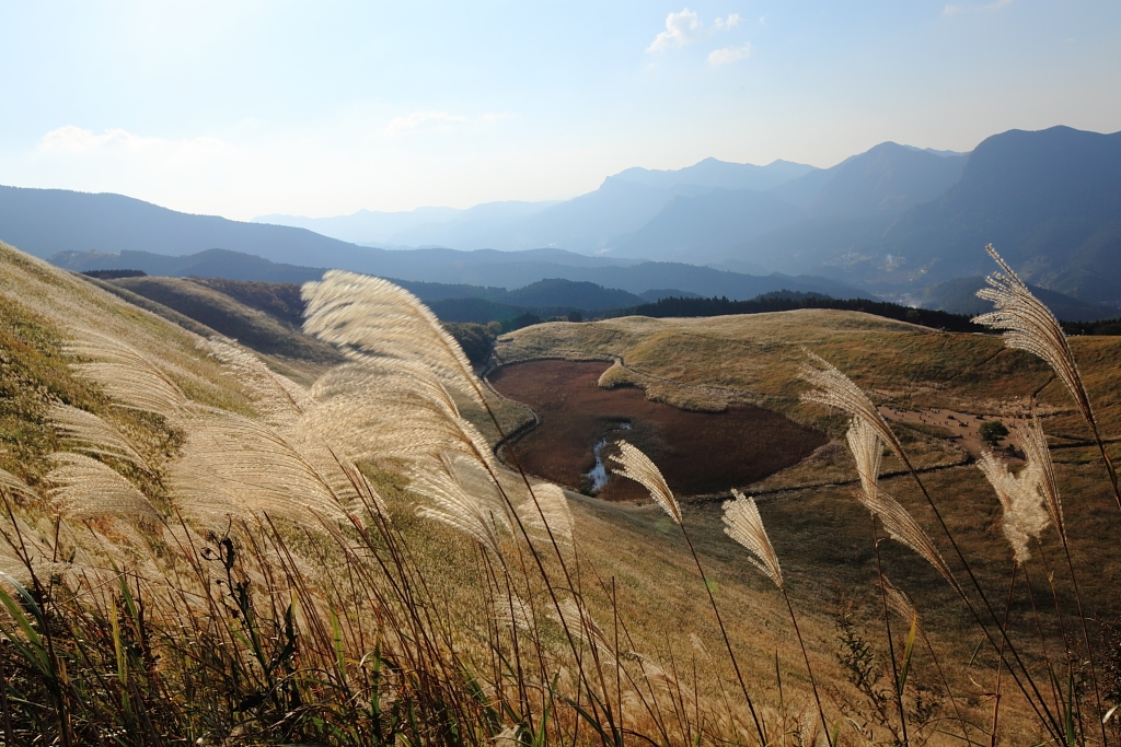 登山道からお亀池を望む ←