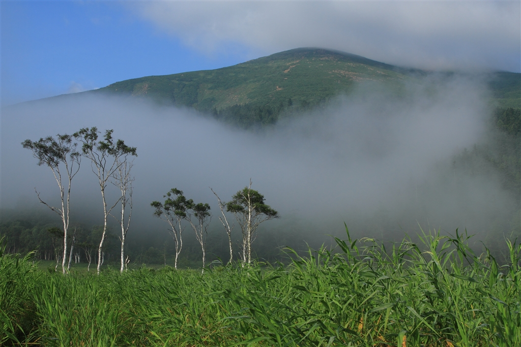 霧が山から降りてきて