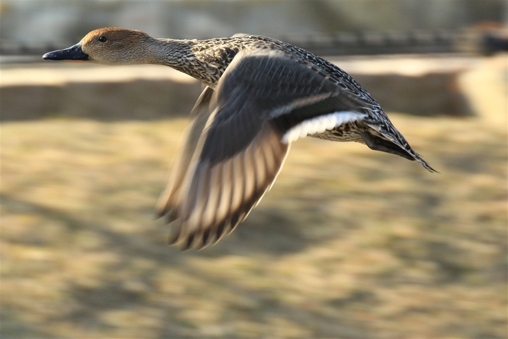 カルガモ(と思われる)の飛翔
