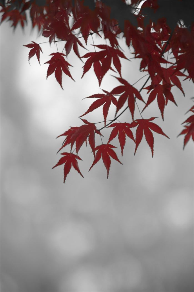 赤いモミジのみ