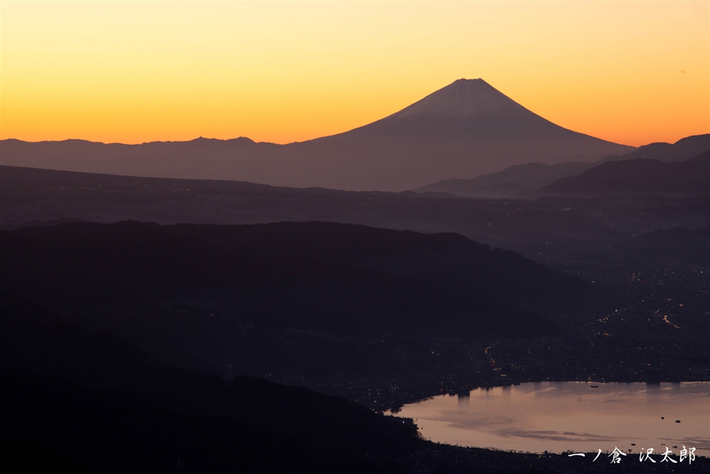 諏訪湖も朝日に映えて