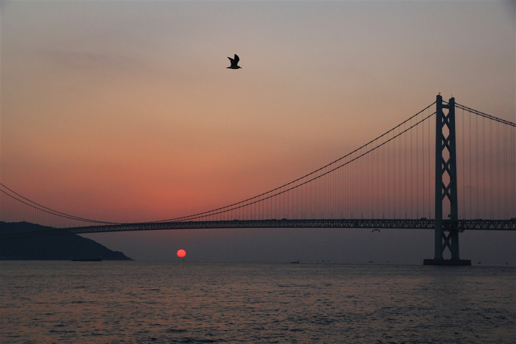 ややガスっぽい夕方でした(左の岬は淡路島の松帆の浦です)
