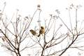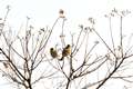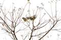 メジロは群れて押し競饅頭のような事をします。寒さを防ぐのに寄り添うんでしょうかね。この時はプックラ膨らんで団子のようです。色から言えば草団子でしょうか。