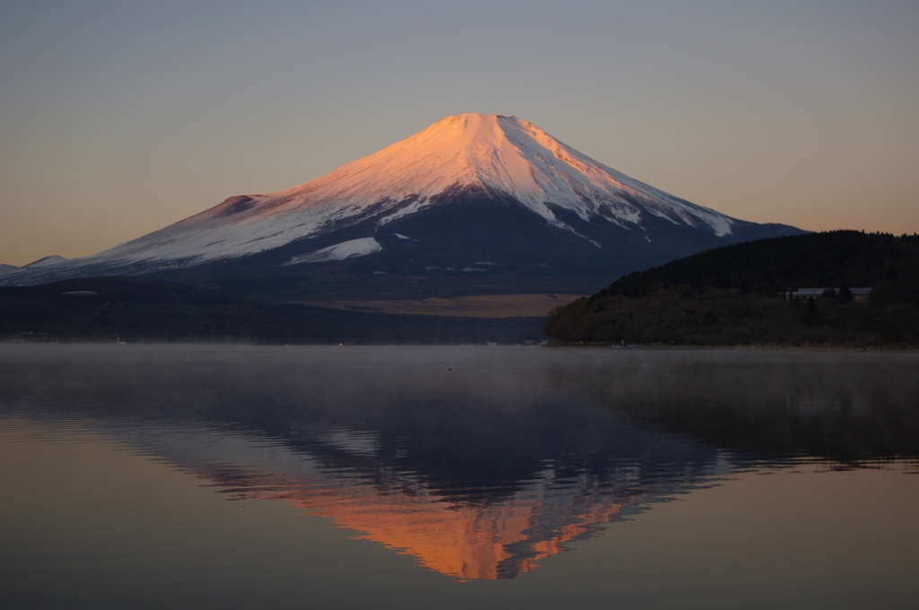 朝日の射した富士山です