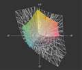 針金モデルの方がカラーモデルから突出している箇所の色は、カラーマネージメント対応ソフトにより適切に変換表示しないと、sRGBのデータの本来の色よりも派手目に表示されてしまうことを意味する。