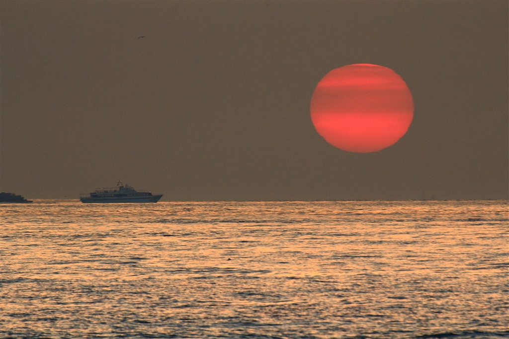 煙霧が過ぎて空の色も夕陽の色も煙っぽい
