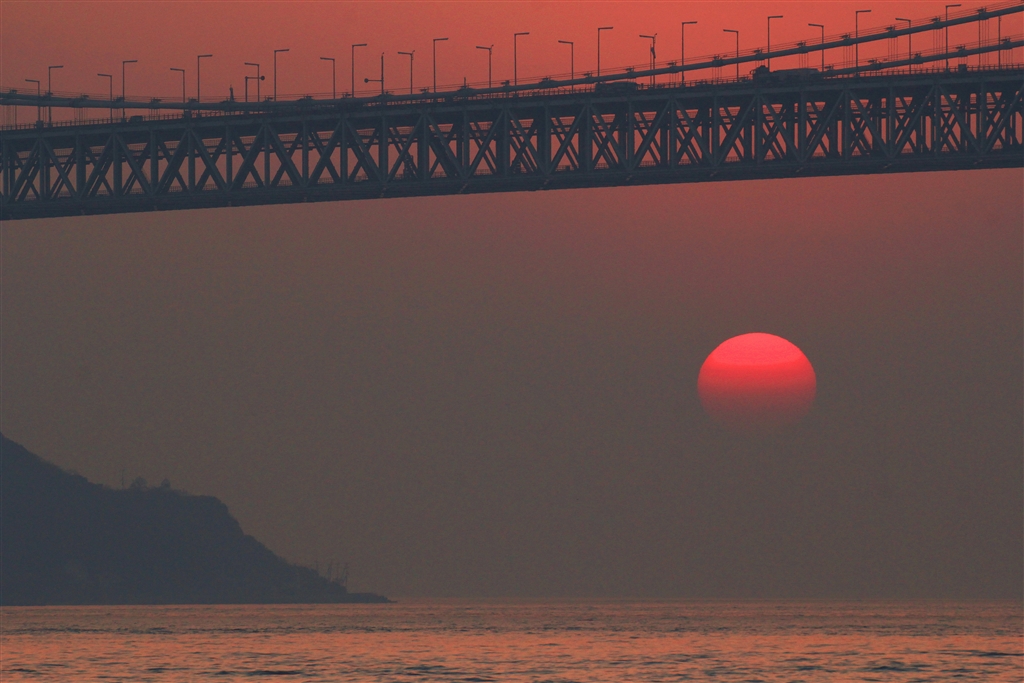 煙霧で消え入りそうな夕陽