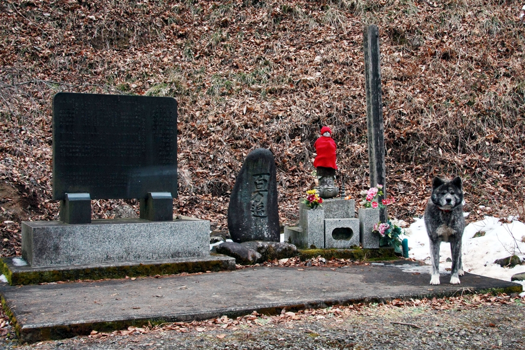 こちらは駐車場(3台分)に有る石像・・・犬は本物です