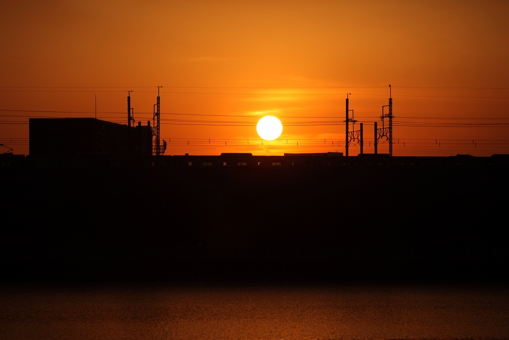 200mmの夕陽と電車