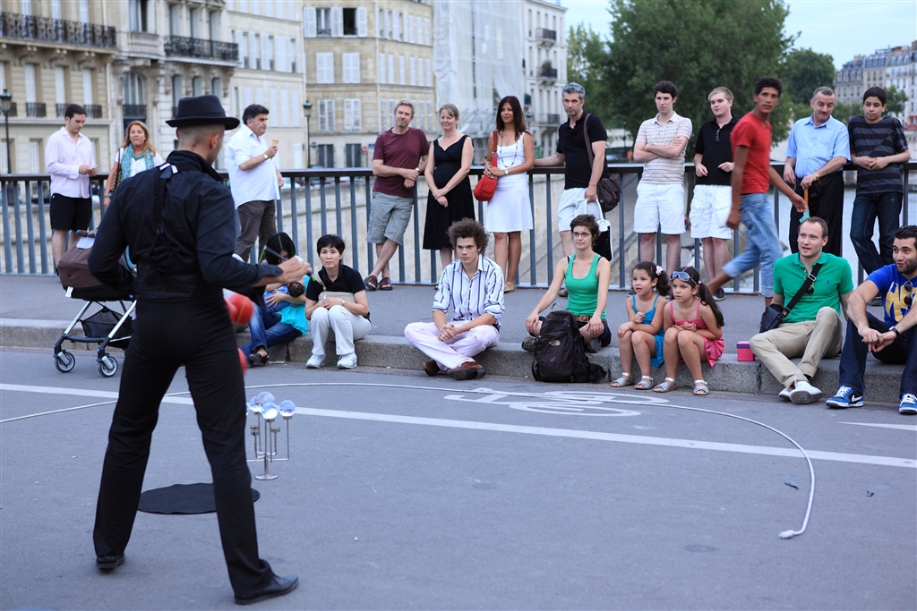 シテ島で大道芸を見る人たち