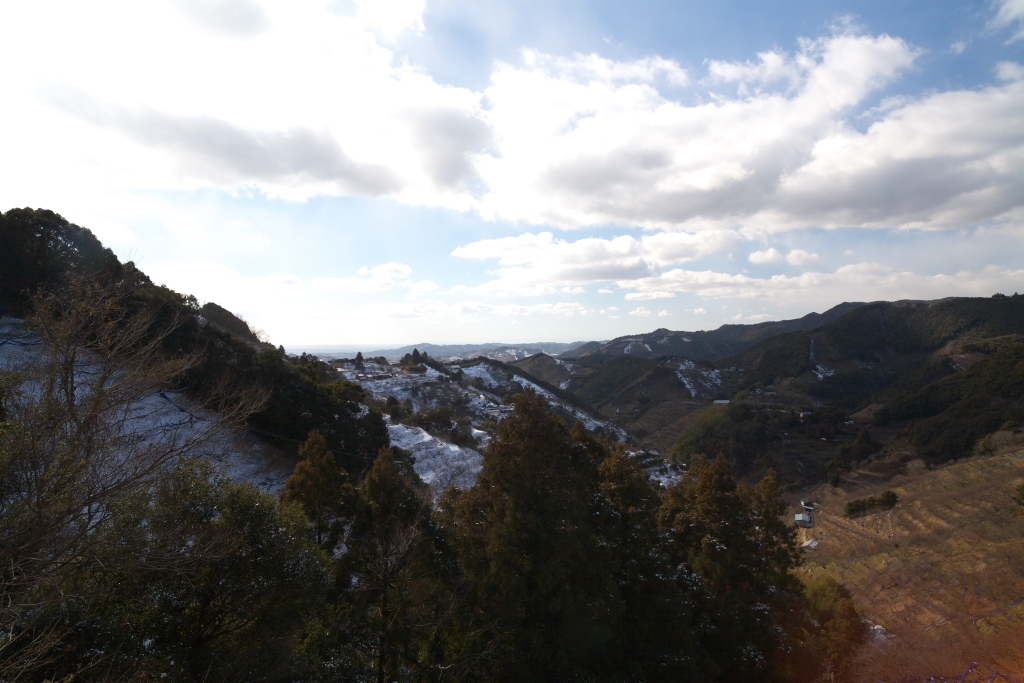 日陰だけ雪が残っています。田辺梅林。