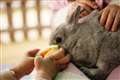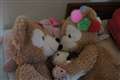 うさちゃんの後ろの電気がお月様みたいで