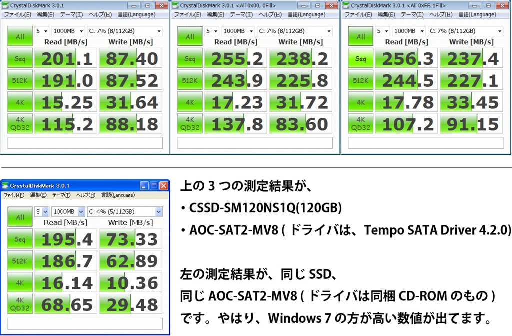 CrystalDiskMark の 測定結果
