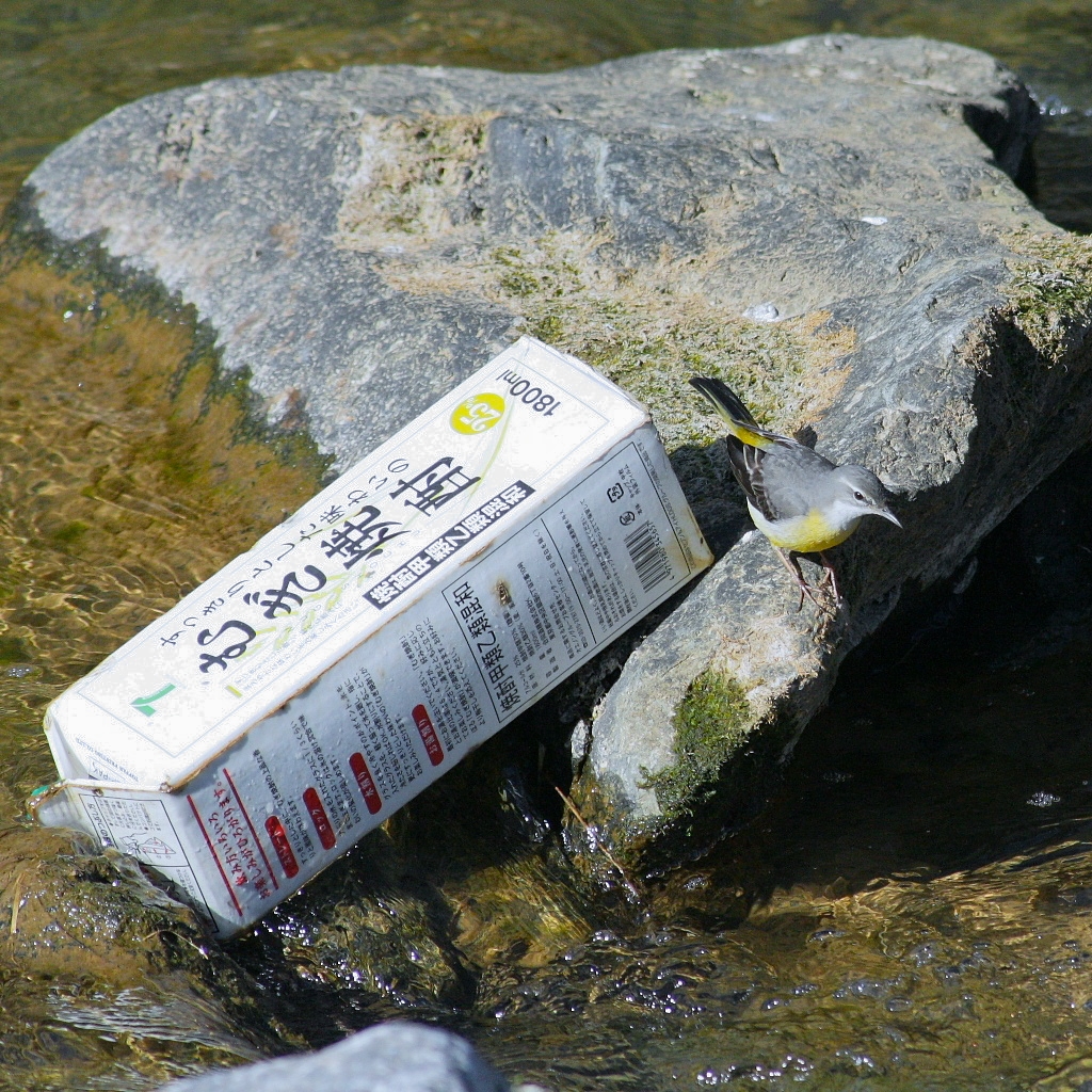 キセキレイと、ポイ捨て「麦焼酎」