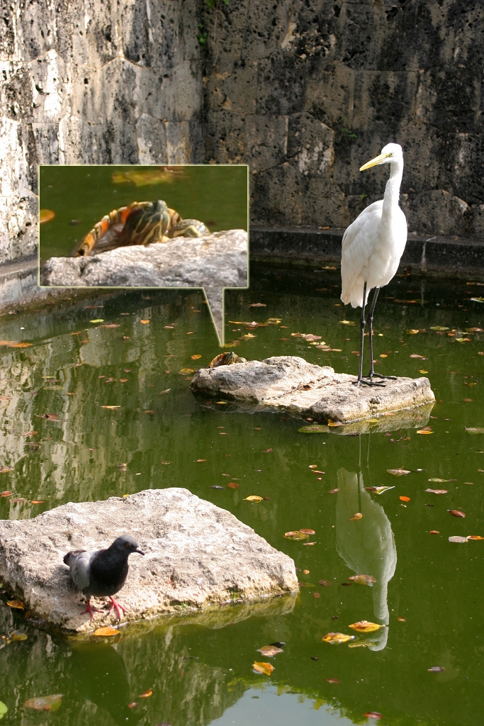 カメとサギ(?)とハト