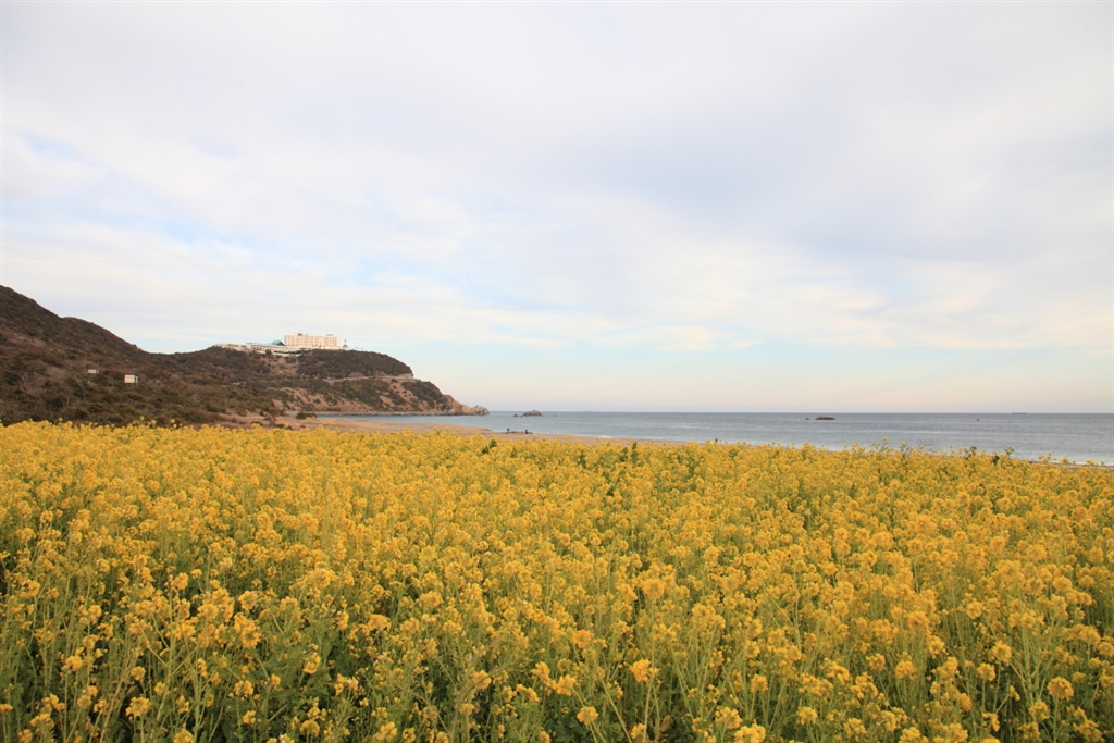 菜の花畑とビューホテル