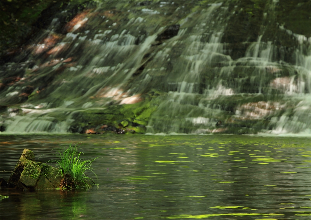 滝を背景として