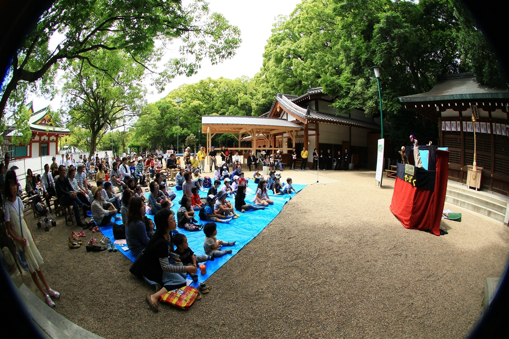 西宮神社境内で開かれた人形劇まつりのオープニングセレモニー(金のおのと銀のおの)