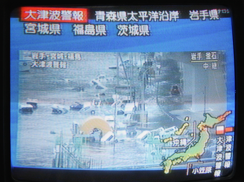 地震発生約40分後(自家発電でTVがついています)