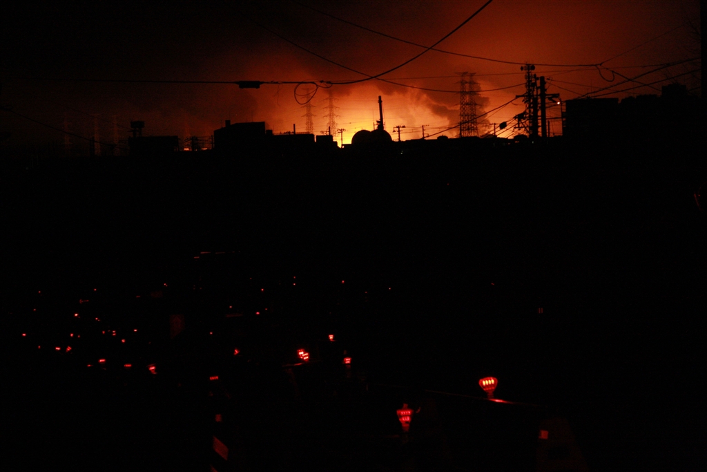 燃えるコンビナート(深刻なガソリン不足の原因に・・・)