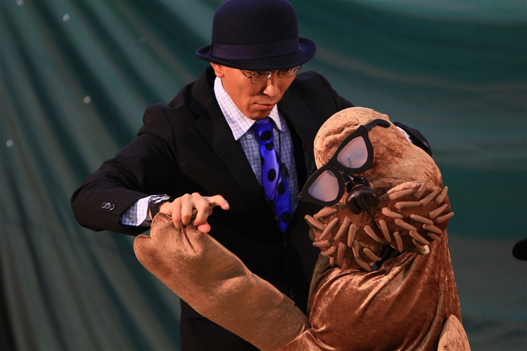 「人形劇団京芸」がセイウチの人形を使ってパフォーマンス