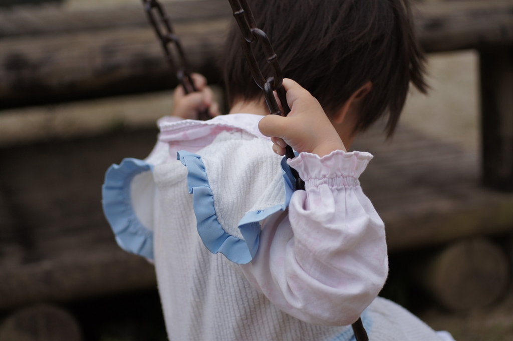 コスプレパジャマのままブランコへ。ピントの当たったトコの質感にびっくり。