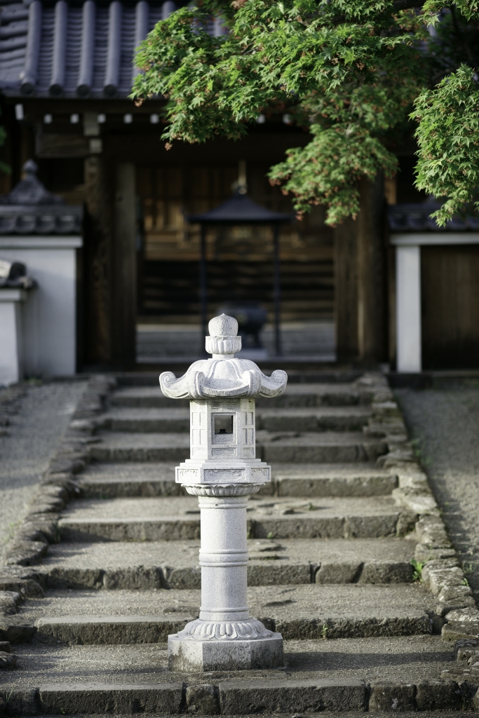 お寺の入り口、煩悩の火をともして