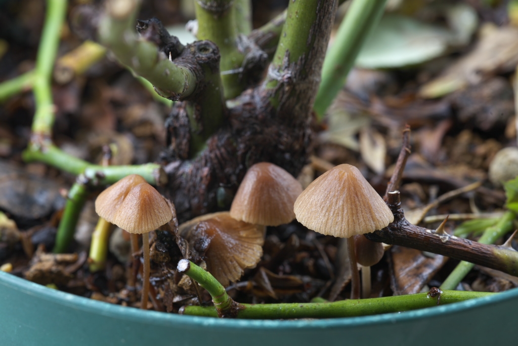 の鉢にキノコが...